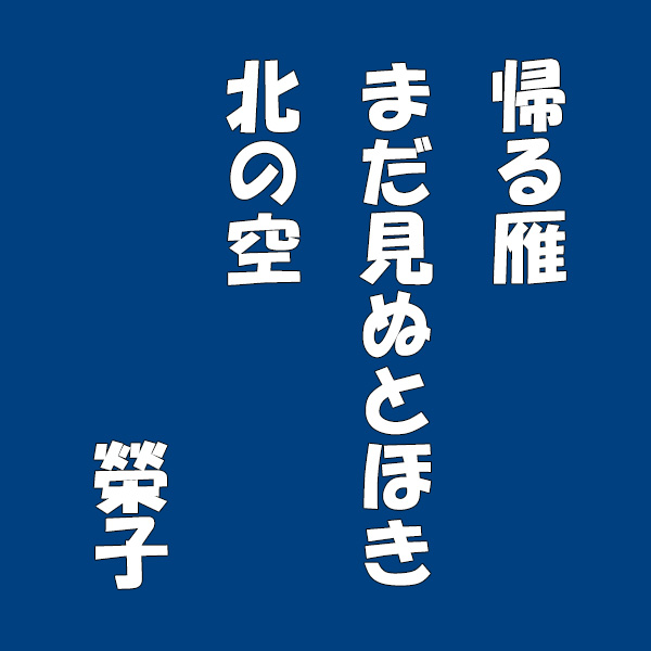 [ 帰る雁まだ見ぬとほき北の空 ]