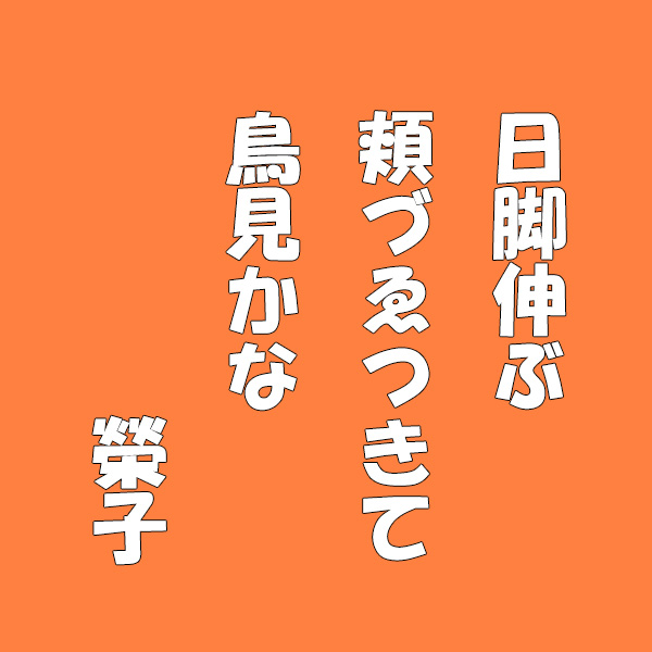 [ 日脚伸ぶ頬づゑつきて鳥見かな ]
