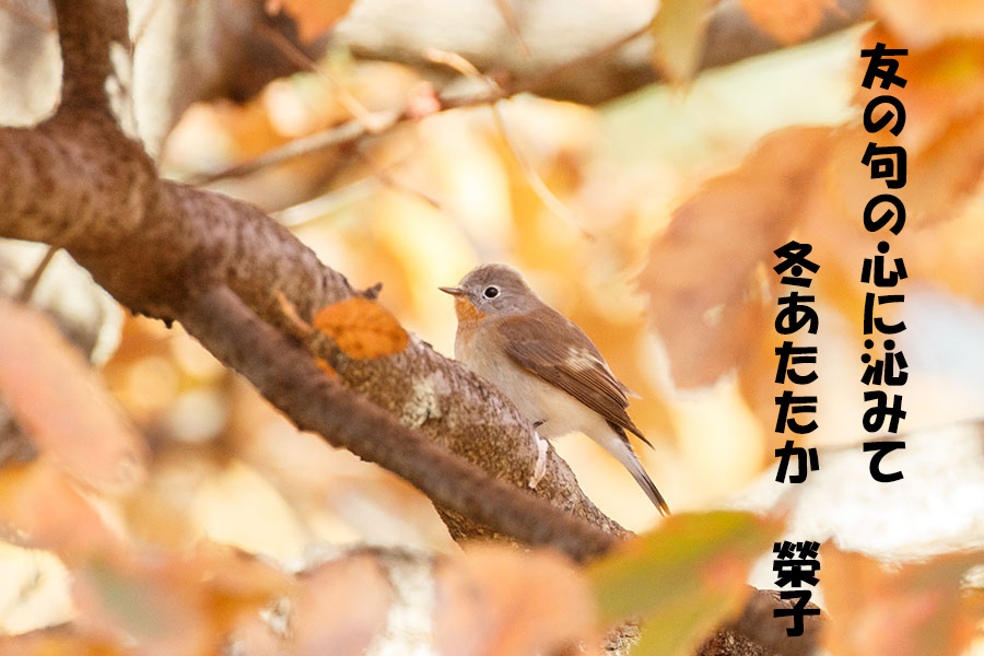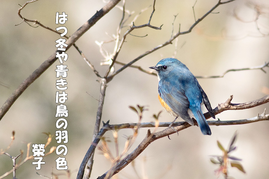 このルリタキビの綺麗な羽の事を一句に仕立てられたのは、さすが、榮子さんと初見では凄く驚きました。このような作品はやはり作者の独断場ですね。季語の『はつ冬』と措辞の『青きは鳥の羽の色』が美しくマッチングしていて、とても魅力的な大特選句です。