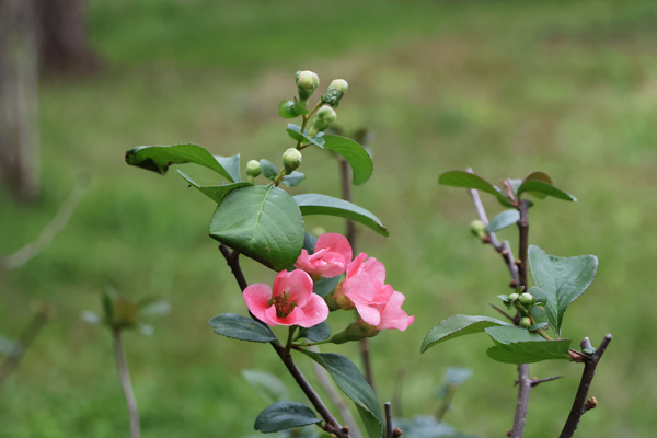 白色の木瓜の花も以前は、見られていたのだが、今回は、このピンクの花だけである。優しい色合いが、心に染み入り、元気をもらえたようだ。また、訪ねてみたいものである。
