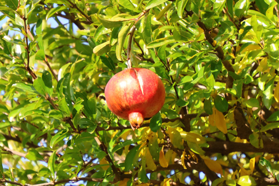 高い崖の上を見上げるとザクロの実がびっしりついているのが、目に入った。すでに割れて地上に落ちているザクロもある。自然がいっぱいの散歩道。ゆっくりゆっくり歩いている。
