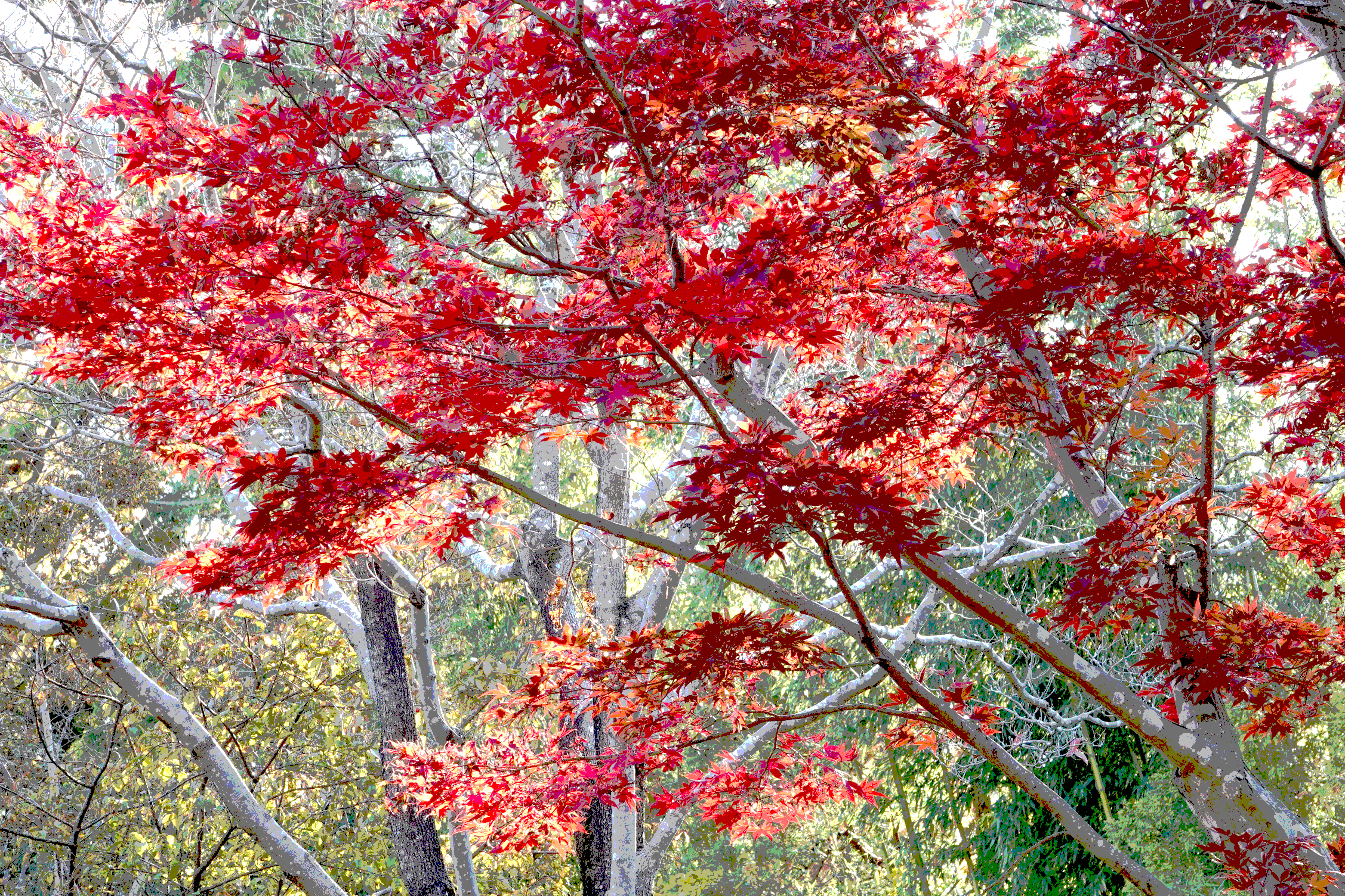 ずっと気になっていた紅葉の名所。自宅から車で15分ほどのところにある。まだ早いと思っていたのだが、紅葉も黄葉も楽しむことが出来た。秋の日差しが柔らかく紅葉の葉を照らし、どこか遠い地を訪ねたような気分をひととき味わうことが出来た。