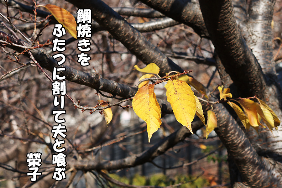 [ 鯛焼きをふたつに割りて夫と喰ぶ ]