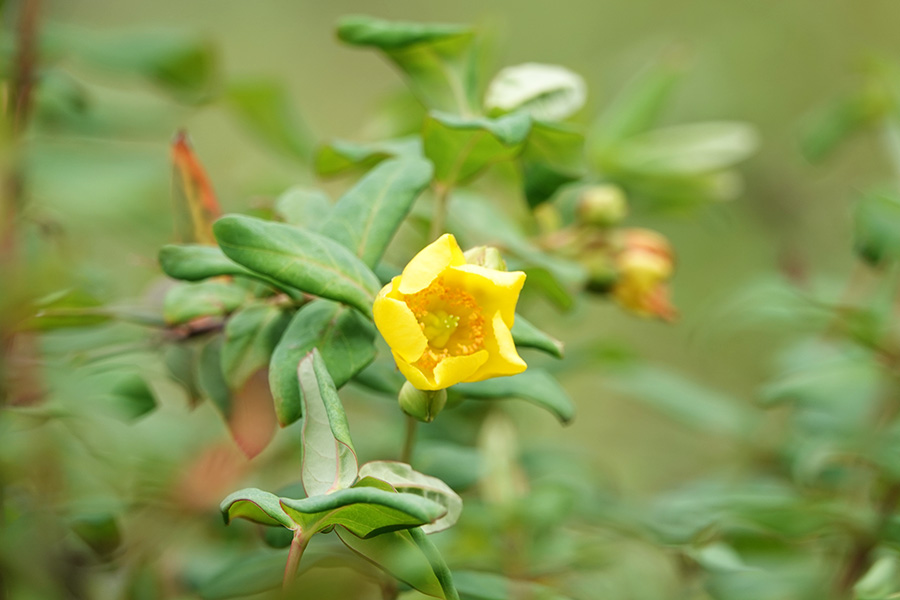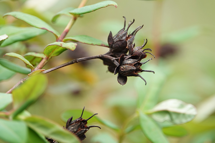 2025/9/19 キンシバイ 久しぶりに訪れた公園で出迎えてくれたのは、鮮やかな黄色の花だった。2年前にこの公園を訪れたときに初めて見た花である。あのとき検索してキンシバイという名前の植物であることを知った。実になると真っ黒になる。その姿が面白くて、今回もレンズを向けてみた。 9月というのに、まだ真夏の暑さを感じる公園でのひとこまである。