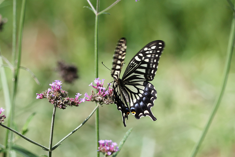 少しだけ歩いてみるとアゲハの飛んでいる姿が目に入った。春から夏にかけ、そして今、秋を迎えようとしているが、チョウとの出会いが、ほとんどなかっただけに、このアゲハとの出会いは、鮮烈で心和ませてくれた。ほんの少しの散歩。これからも続けられたらと願っている。