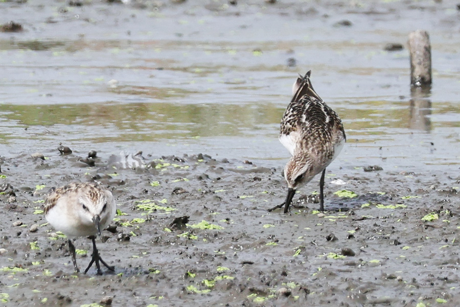 探鳥の折には、無我夢中で気が付かなったのだが、トウネンの大きな群れの中には、ヨーロッパトウネンも混じっていたようである。特徴のある長い脚、前傾姿勢の採餌、パソコンに取り込んでみて気が付いたことであった。機会があれば、今一度出会いたいものである。
