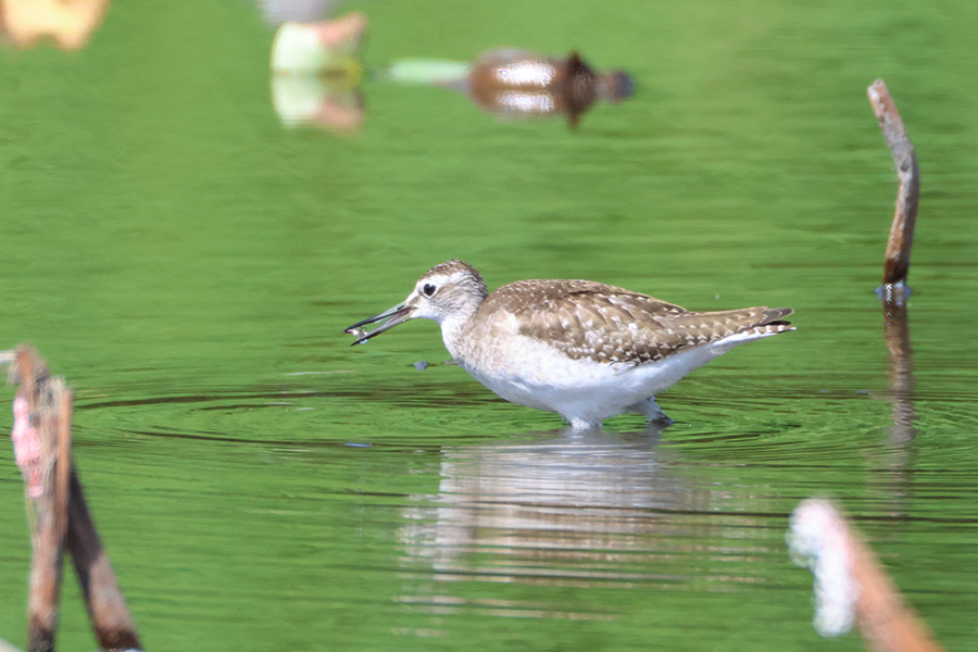 2025/10/10 タカブシギ 久しぶりの蓮田地帯では、タカブシギにも出会った。全部で5羽ほどいたようだが、奥まっていたりして写真を撮るには、少々難しかった。それでも数枚、何とか撮れていたので心に残るものとなった。タカブシギは、大好きなシギであるが、警戒心が強く、かなり用心深く観察しないと飛ばれてしまう。このときも何か動く気配を感じたようで5羽のタカブシギがあっという間に飛んで行ってしまった。 近いうちにまた蓮田地帯を訪ねてみたいものである。