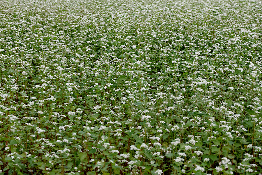 2025/10/20 蕎麦の花 秋の風が吹き始めるころ、楽しみにしているのがそばの花である。ところが今年は、猛暑が続いた影響であろうか、毎年訪れるそば畑にまったくそばの花が見られなかった。 10月も半ばを過ぎて、かつて良くそばの花を見た畑に行ってみると真っ白な蕎麦の花で埋め尽くされていた。少々遅かったようで茶色の葉も所々に見える。それでも嬉しい蕎麦の花。真っ白なそば畑に元気をもらったような気がした。