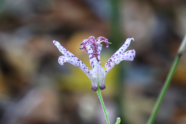 2025/11/16 散歩道 ずっと気になっていたホトトギスの花。ゆっくりゆっくり歩きながら、目的地に到着。自宅から10分もしない距離、実に静かな空間である。そこにひっそりと咲いていたのは、まぎれもなくホトトギス。もう少し早く訪ねてみたかったが、いろいろ用事が重なり、今日になってしまった。この優しい雰囲気が大好きである。