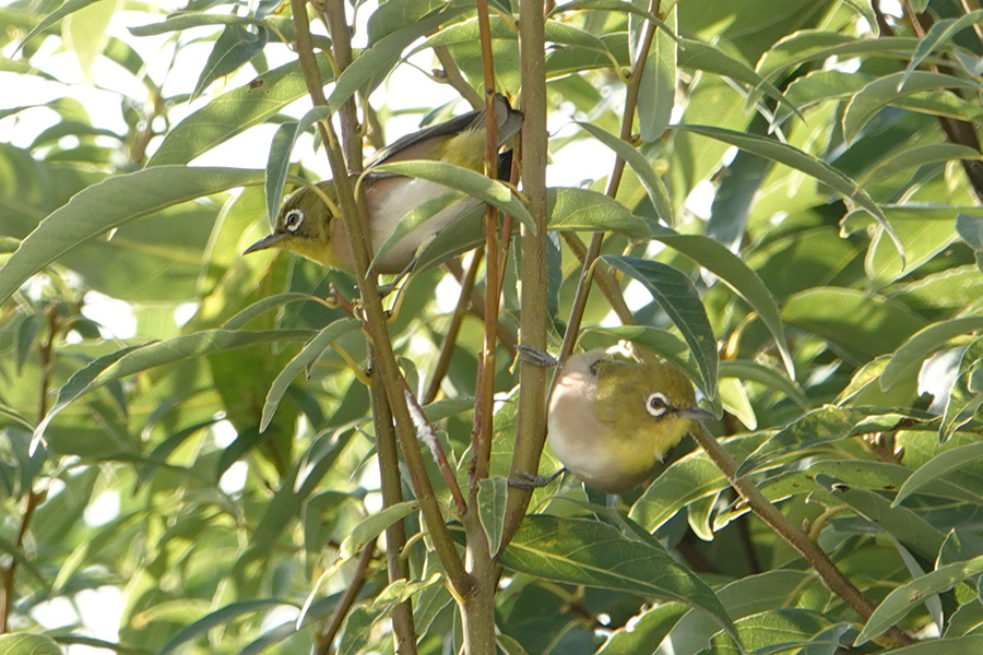 ♫チーチーチー 洗濯物を干しにベランダに出てみると、懐かしいメジロの声。それも数えきれないほどたくさんのメジロたちである。朝の太陽がまぶしくて残念ながら、ほとんど姿が見えない。それでも何とか久しぶりにカメラにその姿を収めたいと悪戦苦闘。