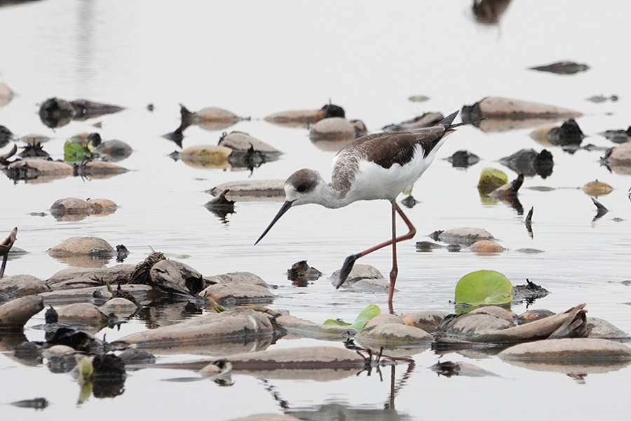 そのひとつがセイタカシギで、スラリとした体型に惚れ惚れと心和んだことであった。比較的出会いの機会の多いセイタカシギであるが、今回のような背景で撮影したことがなかったので、ひとこまひとこまに心弾ませたことであった。